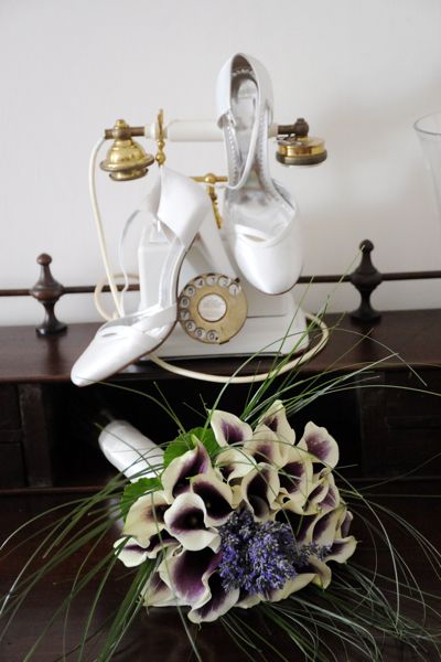 The flowers arrived, Casey had chosen these beautiful Picasso calla lillies with lavender.