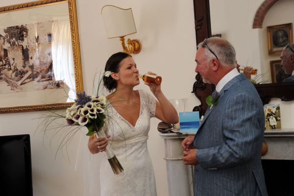 The day of the wedding arrived, the hairdresser arrived and as Casey had already had a trial on a previous visit he set to work on Casey and the bridesmaids and the mums, all very relaxed, Andrea the photographer arrived and started capturing those important preparation moments, and I decorated the car, a beautiful Austin Healy which Charlie had driven down from England especially for the occassion.