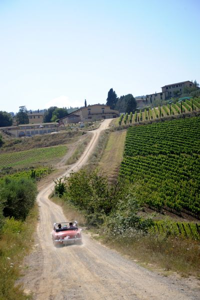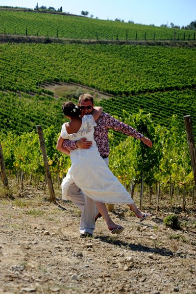 Then it was time for all the guests to get on the bus and head back to Dievole and for Phil to drive Casey back in the Austin Healy, the plan was that we would stop on the way for some photos, but the best laid plans of mice and men meant that we found Casey and Phil back at Dievole tucking into some chilled wine, way to much fun on your wedding day, so we whisked them off into the vineyard for some quick shots.