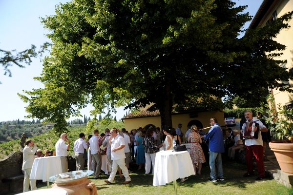 Everyone then tucked into the aperitivo organized on the lawn in front of the villa accompanied by an accordian and mandoline which added the Tuscan touch to the festivities.