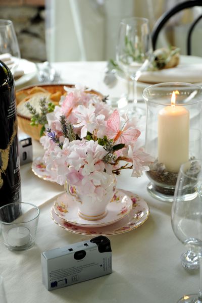 Jackie and her friend started to put together the table centre pieces using the tea cups as the holders for the flowers. The finished result was amazing.