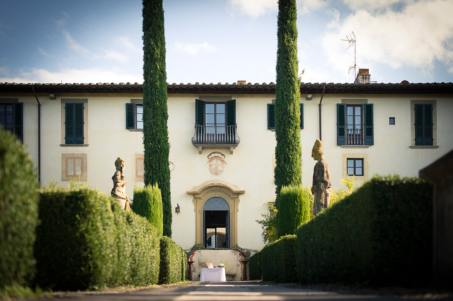 A renaissance Villa perfect to celebrate your renewal of vows in Italy and a stunning panorama overlooking the hills around Florence. A small family chapel for an intimate ceremony and the September sun shining around us. It took me just a few emails with Michael,as he knew what he wanted and that he loved his wife since they got married the first time, 20 years ago. So it wasn’t difficult to give him a couple of choices and find the right venue for their ceremony. After having a look to a couple of venues in the Chianti and in Florence, the groom made his mind on this Villa in Florence. This venue is just a few minutes away from the city center but has a gorgeous Italian garden and a huge swimming pool overlooking the panorama. Michael wanted to keep the secret until the ceremony day but it was impossible not to tell his wife what they were going to do that afternoon!